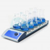 Um único controle, propiciando condições iguais de agitação para até 10 amostras. Ideal para mistura de líquidos em ensaios de duplicatas ou de múltiplas amostras que necessitem das mesmas condições de agitação, em laboratórios de sínteses químicas, pesquisas bioquímicas, microbiológicas e farmacêuticas, e análises físico-químicas.