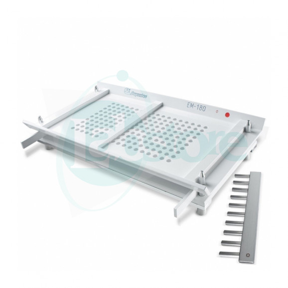 Cada placa acompanha calços, cursores (que possibilitam o encapsulamento de quantidades menores de cápsulas que a capacidade máxima do equipamento), espátulas e compactadores para 30 cápsulas.