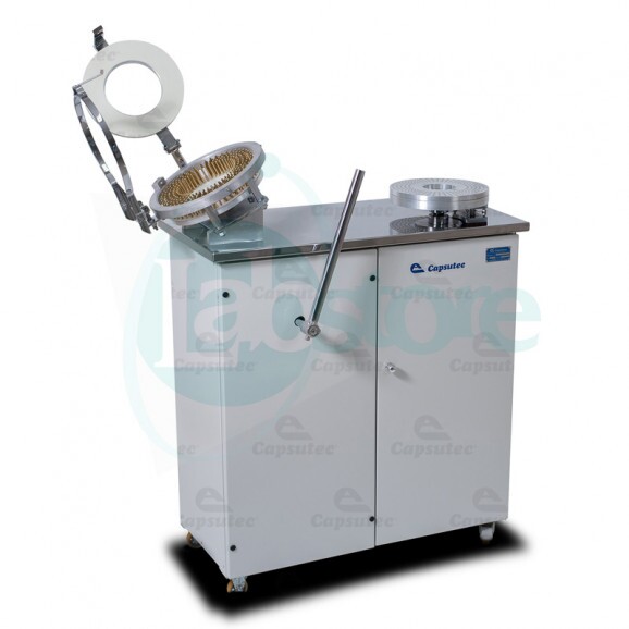 As cápsulas são colocadas manualmente no jogo de disco, com as tampas voltadas para cima. Já preenchido com as cápsulas, o jogo de disco é levado para o equipamento onde um sistema a vácuo faz a abertura dos invólucros.