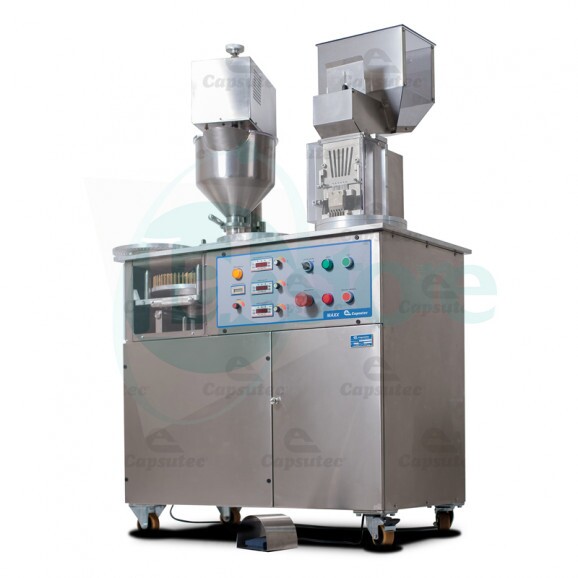 As cápsulas são preenchidas com o pó automaticamente. A unidade do pó possui regulagem da velocidade de colocação, da altura da rosca que faz a compactação do pó, da velocidade do mexedor e da rosca do pó e também da quantidade de voltas do disco.