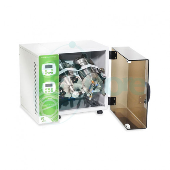 • Dois (02) extratores para compostos voláteis sem espaço livre (ZHE), construídos em aço inox 316 com volume de 600ml e duas telas para acomodar filtros com diâmetro de 90mm.