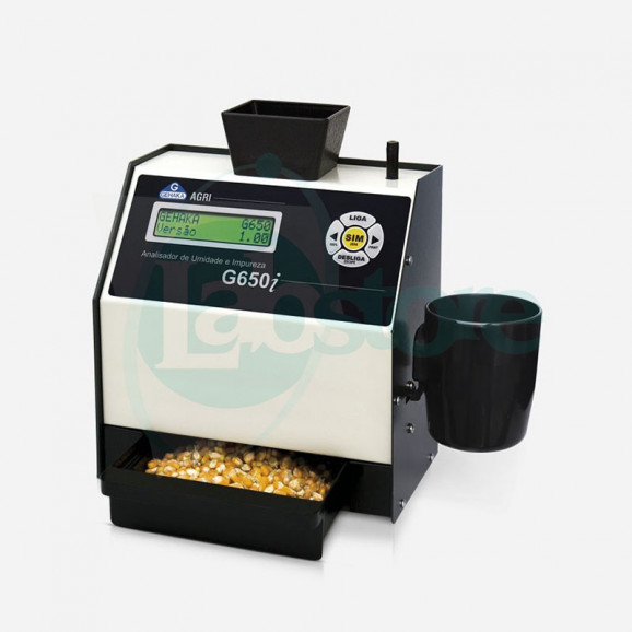 O G650i é o único medidor de umidade de grãos portátil que reúne em um só equipamento o medidor de umidade e uma balança eletrônica independente. Com isso, o G650i realiza com precisão a medição da umidade e os cálculos de impurezas e defeitos dos grãos. Com ele também é possível medir o PH (Peso Hectolitro) dos grãos. Dotado de saída RS 232, o medidor de umidade G650i pode transferir para impressora ou computador os dados armazenados.