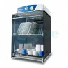 Suas prateleiras podem ser adquiridas separadamente, são removíveis e podem ser utilizadas como escorredores para as peças, logo após a lavagem, ou como expositores, para as peças já secas.