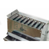 Tipo Johnes. Utilizado para dividir ou quartear amostras de sementes de grãos e de forrageiras, o material derramado no seu interior passa por 18 canaletas de 15 mm de largura e é dividido em 2 porções, que são colhidas em 2 bandejas. Construído em aço inox 304 com base de nylon, provida de pés reguladores de nível.