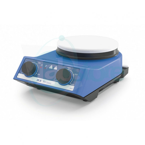 Recém-desenvolvido agitador magnético económico com aquecimento. Casquilho de acordo com a DIN 12878 para a conexão de um termômetro de contacto eletrônico, tal como ETS-D5. Um controle da temperatura muito preciso é possível com a colocação do sensor diretamente no agente. Elevada potência calorífica de 600 watts e placa de aquecimento cerâmica garante a rapidez de aquecimento. Temperatura de segurança ajustável entre 100 e 360 °C.