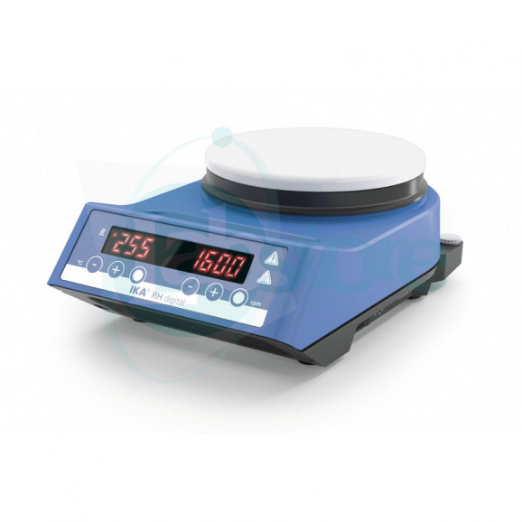 Agitador magnético inovador com aquecimento. Casquilho de acordo com a DIN 12878 para a conexão de um termômetro de contacto eletrônico, tal como ETS-D5. Um controle da temperatura muito preciso é possível com a colocação do sensor diretamente no agente. Elevada potência calorífica de 600 watts e placa de aquecimento cerâmica garante a rapidez de aquecimento. Temperatura de segurança ajustável entre 100 e 360 °C.