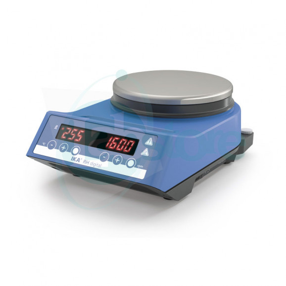 Agitador magnético inovador com aquecimento. Casquilho de acordo com a DIN 12878 para a conexão de um termômetro de contacto eletrônico, tal como ETS-D5. Um controle da temperatura muito preciso é possível com a colocação do sensor diretamente no agente. Uma elevada potência calorífica de 600 watts e placa de aquecimento composta por cobre e aço garante a rapidez de aquecimento. Temperatura de segurança ajustável entre 100 e 360 °C.