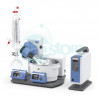 The completely revised RV 10 auto is the flagship of the IKA Rotation Evaporator product line. Its impressive features include an innovative handling concept with a bright, high-contrast, TFT, color-graphic control panel, an integrated vacuum controller, cooling water monitoring and mature safety standards. The RV 10 auto offer all properties required for efficient, safe, and cost-effective operations. These include automatic control of the vacuum and cooling water volume. Its intuitive handling concept quickly leads its users to their desired results in every application. Thanks to specially designed glass guides, the transparent coated vertical condenser makes extremely efficient use of the 1500 cm² cooling surface. Thanks to its extended ramp programming capability, the RV 10 auto allows users to carry out customized procedures. Other innovative features, such as smooth start, interval mode, right-left operation in interval mode, or the timer function for time-lapse tests, make everyday work in the laboratory much easier. Safety is ensured by the motorized lift with safety-stop function that automatically lifts the evaporation flask out of the heating bath in the case of power failure. Additional safety for users is provided by individually adjustable temperature safety circuits, protection against boiling dry, adjustable end-point recognition to prevent glass breakage, and a locking function. The receiving flask and the condenser are also available in coated versions. The USB port or the RS-232 interface enable remote control with the IKA “labworldsoft” software package and an update option with the firmware update tool. The device comes complete with vacuum hoses and hose connectors for your in-house cooling water supply. The new IKA Vacstar digital included in the package is controlled directly from the drive unit of the RV 10 auto via the data cable provided.