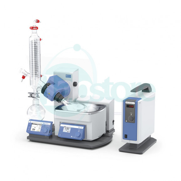 The completely revised RV 10 auto is the flagship of the IKA Rotation Evaporator product line. Its impressive features include an innovative handling concept with a bright, high-contrast, TFT, color-graphic control panel, an integrated vacuum controller, cooling water monitoring and mature safety standards. The RV 10 auto offer all properties required for efficient, safe, and cost-effective operations. These include automatic control of the vacuum and cooling water volume. Its intuitive handling concept quickly leads its users to their desired results in every application. Thanks to specially designed glass guides, the condenser makes extremely efficient use of the 1500 cm² cooling surface. Thanks to its extended ramp programming capability, the RV 10 auto allows users to carry out customized procedures. Other innovative features, such as smooth start, interval mode, right-left operation in interval mode, or the timer function for time-lapse tests, make everyday work in the laboratory much easier. Safety is ensured by the motorized lift with safety-stop function that automatically lifts the evaporation flask out of the heating bath in the case of power failure. Additional safety for users is provided by individually adjustable temperature safety circuits, protection against boiling dry, adjustable end-point recognition to prevent glass breakage, and a locking function. The receiving flask and the condenser are also available in coated versions. The USB port or the RS-232 interface enable remote control with the IKA “labworldsoft” software package and an update option with the firmware update tool. The device comes complete with vacuum hoses and hose connectors for your in-house cooling water supply. The new IKA Vacstar digital included in the package is controlled directly from the drive unit of the RV 10 auto via the data cable provided.