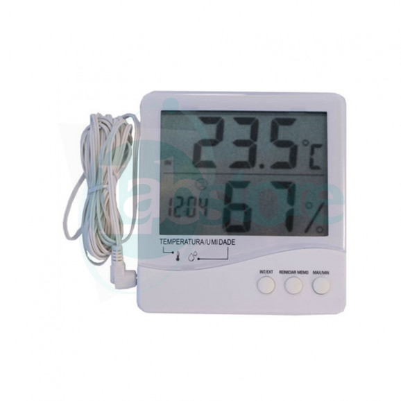 Equipamento registra valores máximo e mínima tanto para a temperatura quanto para a umidade.